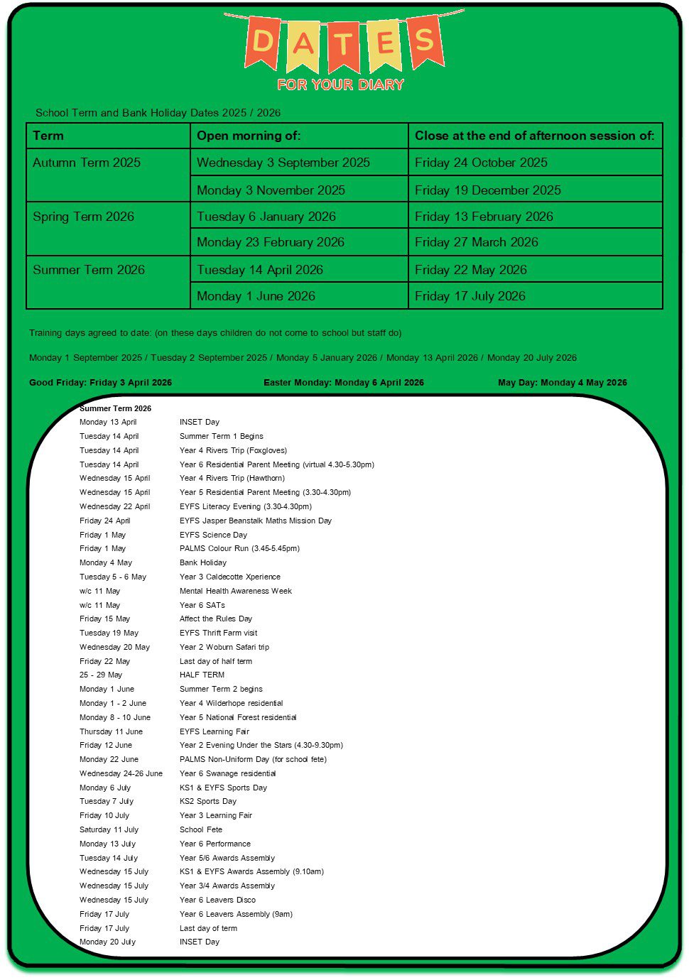 - Term dates and school holidays